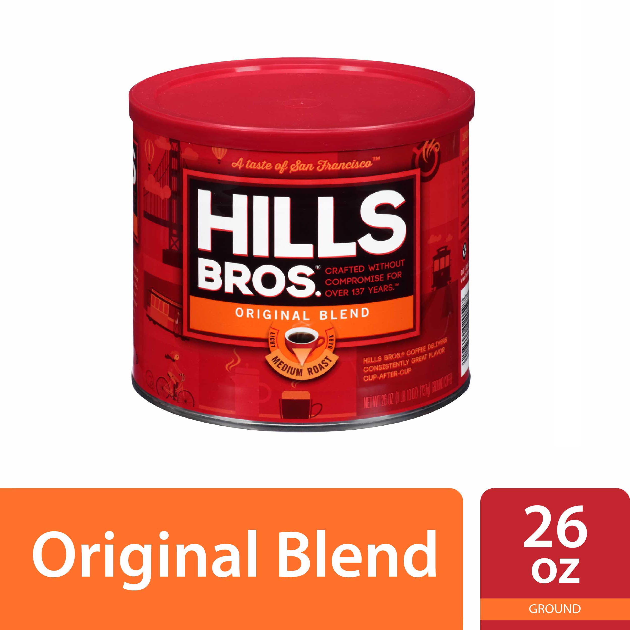 Hills Bros Original Blend Ground Coffee Medium Roast 26 Oz Can Walmart Com